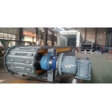 該裝置為直交軸支點(diǎn)浮動(dòng)式,主軸套裝在行星減慢速器的輸出軸內(nèi),通過(guò)瑣緊盤將兩者聯(lián)接起來(lái),其特點(diǎn)是懸掛無(wú)基礎(chǔ),重量輕,速比大,由于采用支點(diǎn)浮動(dòng)式,減少了安裝誤差及支座引起的附加彎矩,提高了傳軸的使用壽命,拆裝及維修方便。