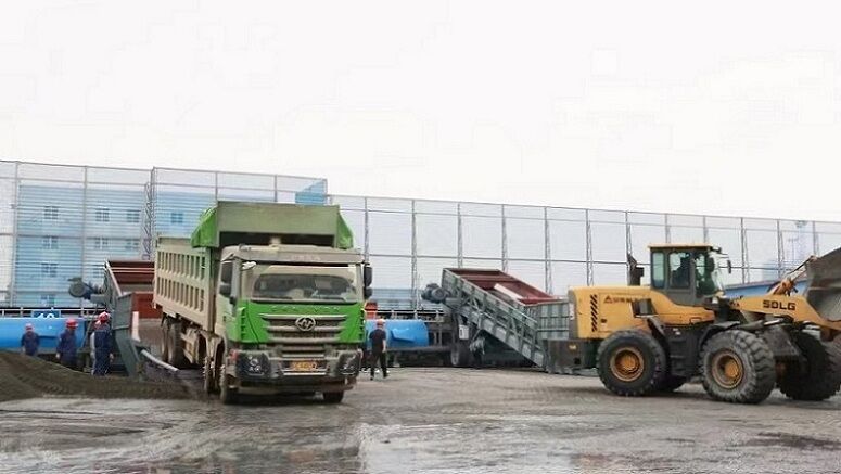 2)側(cè)傾自卸運(yùn)煤汽車(chē)直接卸煤至地表給料機(jī)的接收料斗;