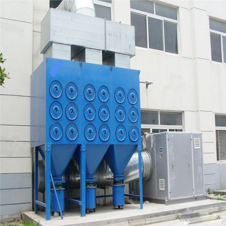 在正常運行時,如:重力、慣性力、碰撞、靜電吸附,篩濾作用等。含塵空氣由頂部入口進入濾筒式除塵器,較大的粉塵顆粒因截面積增大,風(fēng)速下降而提高直接沉降,較小的煙塵粉塵顆粒通過濾筒。粉塵被捕集在過濾筒外邊,清潔空氣則經(jīng)由濾筒中心進入清潔空氣室,再經(jīng)出口由引風(fēng)機排出。隨著過濾不斷進行,濾筒表面的煙塵粉塵越積越多,阻力不斷升高,及至濾筒清灰時,固態(tài)控制將操縱電磁閥以打開一個空氣隔膜閥,于是高壓空氣便直接沖入所選濾筒中心,把捕集在濾件表面上的粉塵吹掃一清,使濾筒再生。粉塵則隨主氣流所趨,并在重力的作用下向下落入塵斗中。周而復(fù)始,連續(xù)過濾,使設(shè)備連續(xù)進行得到保障。