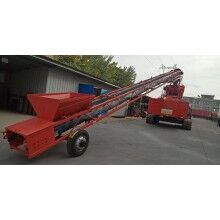 新型履帶移動式堆料機(jī),以皮帶輸送機(jī)的物料輸送功能為主體,皮帶輸送機(jī)的兩端分別設(shè)置有傳統(tǒng)的入料裝置和出料裝置。其特征在于,還包括履帶底盤和行走輪,皮帶輸送機(jī)的一端通過轉(zhuǎn)盤機(jī)構(gòu)與履帶底盤連接,皮帶輸送機(jī)的另一端通過鉸接機(jī)構(gòu)與行走輪連接,整個裝置由液壓馬達(dá)驅(qū)動履帶行走,動力可采用柴油發(fā)動機(jī)或外接電源。