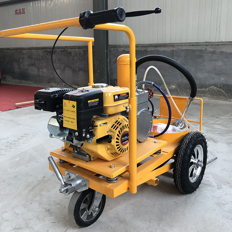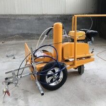 冷噴(冷漆)劃線機(jī):冷噴劃線是一種歷史最為悠久的一種常規(guī)型劃線,該類劃線一般由一臺(tái)常溫劃線機(jī)即可完成施工。冷噴劃線機(jī)按照其劃線方式不同可分為高壓無氣型、低壓空氣輔助型等兩個(gè)類型;按照其所使適用涂料的種類不同又分為常溫熔劑型、常溫水性及加熱溶劑型三個(gè)類型(廣義的常溫標(biāo)線機(jī)械也包括雙組份型,尤其是雙組份噴涂型,它是一種兼具常規(guī)常溫涂料及雙組份涂料噴涂功能的廣譜型劃線機(jī)),如下圖手推式高壓無氣冷噴劃線機(jī)