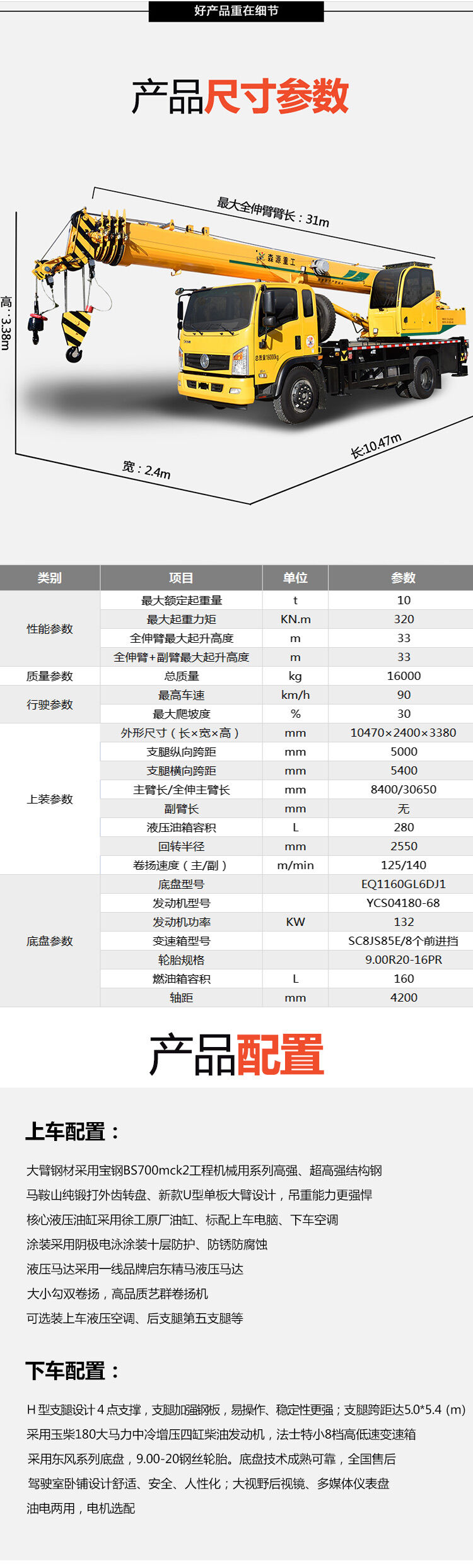 森源十噸汽車吊適用于狹窄工況的小型吊車 東風(fēng)