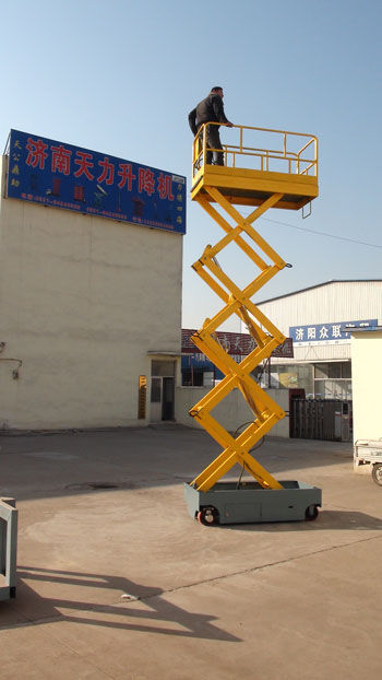 自行式液壓升降平臺自身具有行走及升降功能,行走可調(diào)速并有剎車裝置。用電瓶帶動直流電機進行行走和升降,也可選用交流電機或柴油機進行行走和升降,還可選用無線電子遙控器進行升降,不需要人工牽引,不需外接電源,移動靈活方便,使高空作業(yè)更方便快捷,是現(xiàn)代企業(yè)高效安全生產(chǎn)理想高空作業(yè)設(shè)備。本產(chǎn)品也可根據(jù)用戶要求定制不同高度、不同尺寸的升降平臺!