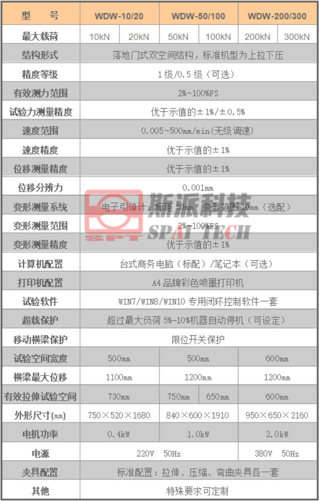 WDW系列大門式微機(jī)控制電子萬(wàn)能材料試驗(yàn)機(jī)采用穩(wěn)定的門式主機(jī)結(jié)構(gòu),選用日本松下(Panasonic)伺服調(diào)速系統(tǒng)、精密設(shè)計(jì)同步減速系統(tǒng)、臺(tái)灣上銀(HIWIN)/銀泰(PMI)滾珠絲杠、美國(guó)傳力(Trancell)/世銓(Celtron)力傳感器等主要部件,主要應(yīng)用于金屬、非金屬材料及制品的拉伸、壓縮、彎曲等力學(xué)性能試驗(yàn),具有結(jié)構(gòu)簡(jiǎn)單、穩(wěn)定可靠、外形美觀等特點(diǎn),深受廣大用戶的歡迎。