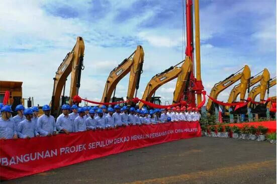 8月9日,在國務(wù)委員王勇和馬來西亞首相納吉布的見證下,由中國交建承建的馬來西亞東海岸鐵路開工儀式在彭亨州首府關(guān)丹舉行。該項(xiàng)目是目前中國企業(yè)海外在建的最大工程,也是“一帶一路”倡議下最大的單體建設(shè)項(xiàng)目。儀式上,三一的混凝土泵車、挖掘機(jī)、旋挖鉆機(jī)、起重機(jī)等大型機(jī)械設(shè)備集體亮相,備受各方矚目。