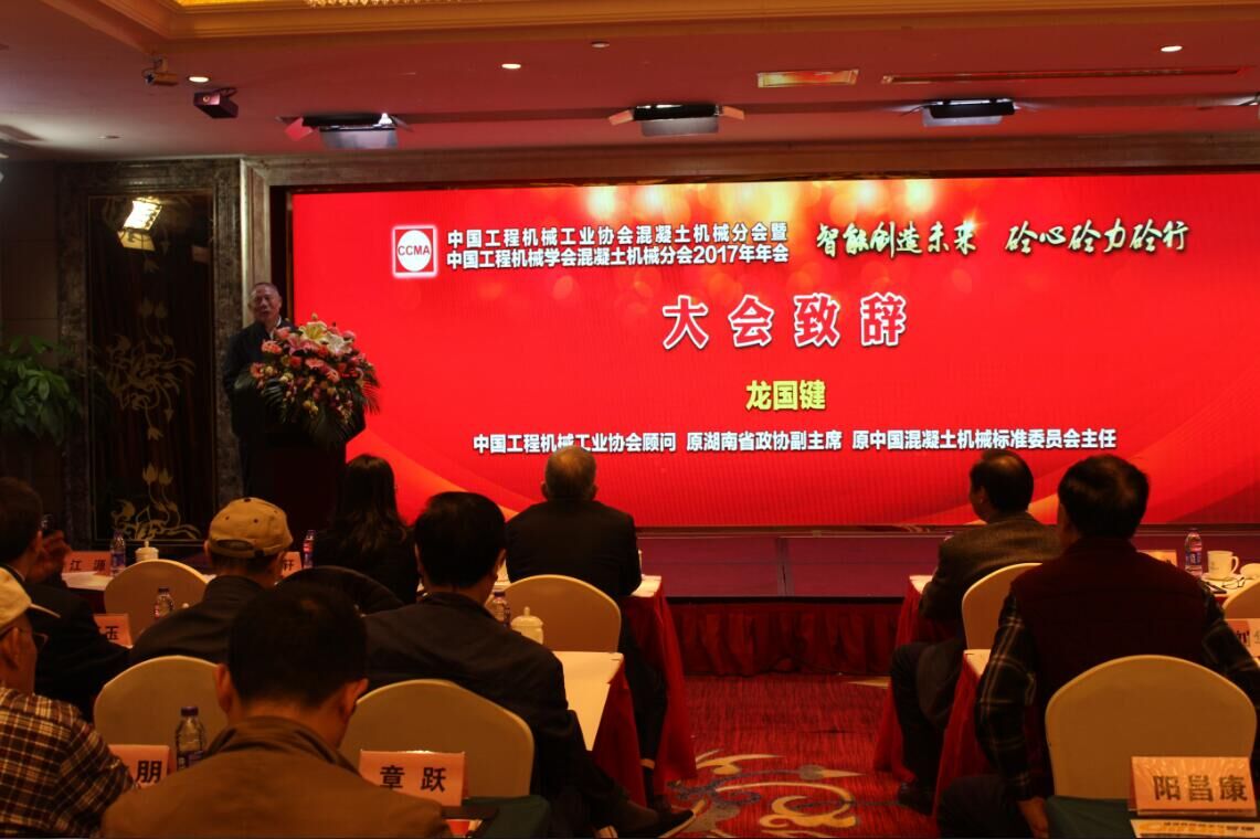 大會首先由中國工程機械工業(yè)協(xié)會顧問和原湖南省政協(xié)副主席、原中國混凝土機械標(biāo)準(zhǔn)委員會主任龍國鍵致辭,龍主席對會議提出的新思想、新概念給予了充分的肯定,特別是這次會議凝聚了行業(yè)及相關(guān)行業(yè)上下游的力量,真實起到了“砼心砼力砼行”的作用。最后祝愿2017年大會取得圓滿成功,混凝土機械行業(yè)再上一個新臺階。